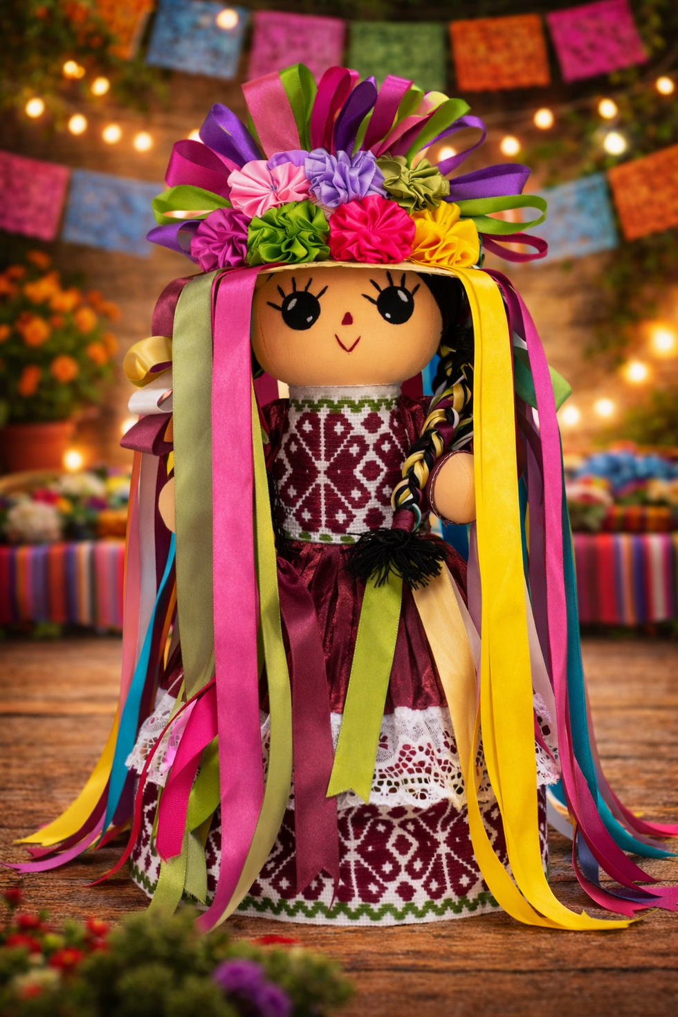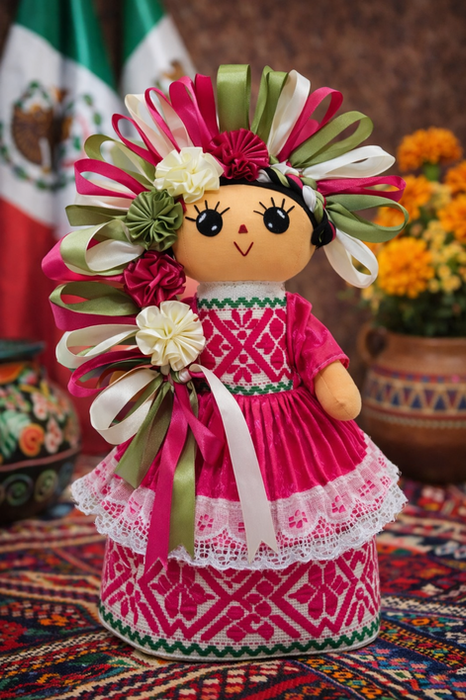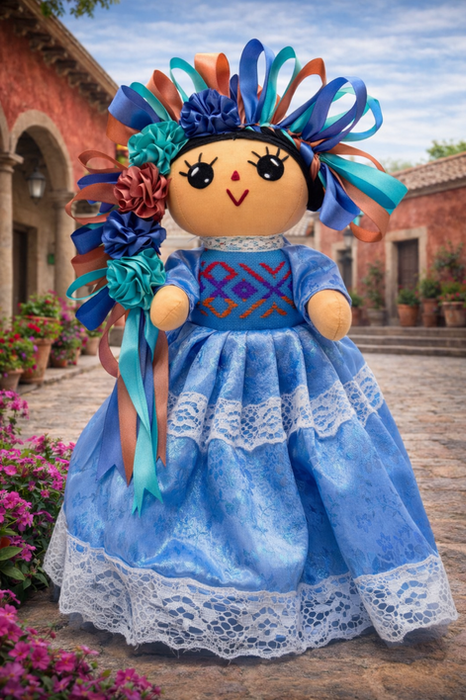 Nuestras muñecas están elaboradas por artesanos de Amealco, respetando la técnica tradicional, y cada traje típico es confeccionado en México con detalles auténticos que honran la identidad de cada estado.